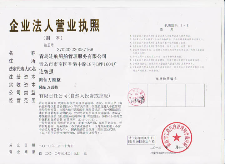 2010年03月青島連航船舶管理服務(wù)有限公司正式成立。